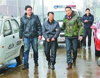 犯罪嫌疑人(左二)被警方抓获 通讯员供图□本报记者 陈彤彤 通讯员 姜鹏
