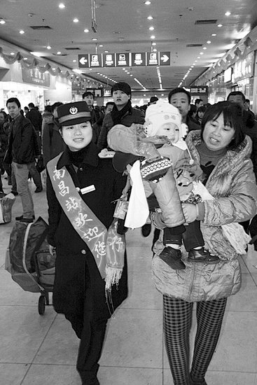 李军29岁,是南昌火车站候车室“红土情”服务台的一名普通客运员,她每天的工作是从早上8点到晚上9点连续13个小时接受旅客咨询和求助。