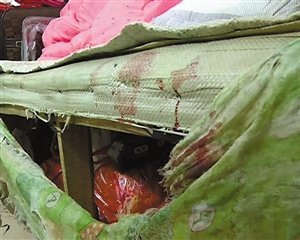 出租屋的床上都是血迹。