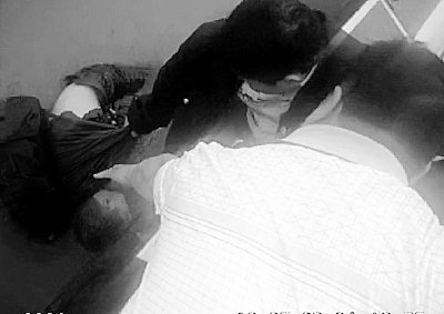 因从高处坠落水中,造成多处内脏损伤,全身无法动弹,男子面部红肿,眼角、嘴角均有流血,不时发出“哎哟”的叫声。