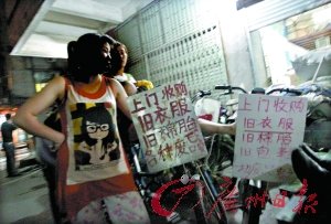 5元一条长裤、8元一件毛衣、12元一双球鞋,还有各式家具用品……这不是清仓大卖场,而是一个长年形成的露天回收市场,藏身于广州龙津东路的欧家园居民区内。成行成市的上百米阵势,既做捡便宜的街坊生意,也做落后地区的外销。
