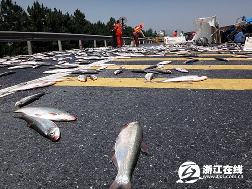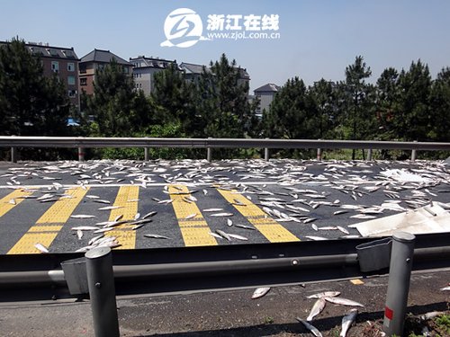 1.5吨鱼散落在高速上
