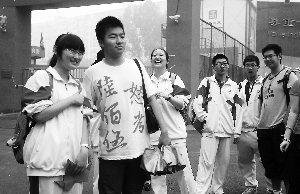 昨天,高考结束后,在人大附中考点,考生们高兴地合影留念。晨报记者 李木易/摄