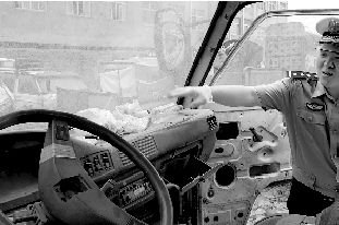 昨日上午10点,在郑平路南三环交巡警三大队停车场内,记者看到一辆在“大排查、大教育、大整治”货车专项查处行动中刚被查扣的白色轻型货车。