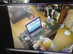昨天,金华市婺城公安分局站前派出所民警费杰庆给我看了一段视频:一名光头男子在市区一家服装店强吻年轻女店员,由于动作粗鲁,将女店员的下巴咬伤。之前一直在试图与光头男周旋的女店员,被咬后将柜台内放钱的抽屉打开,光头男拿走现金后慢慢地离开。光头男离开后,女店员愣在那里,呆呆地,手机放在一边,半天没有报警。