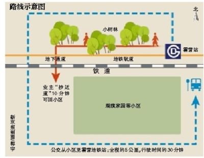 王丹称,如果小区业主乘坐公汽去地铁,至少需绕30分钟的远儿。而走这条小道仅需10分钟,所以,每日万人次的“地铁族”通过该路上下班,其中不少业主晚上10点以后才回来。