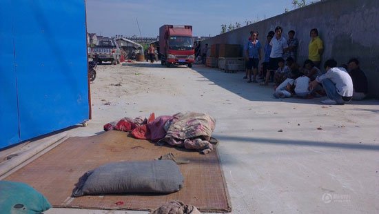事发地周边有大量外来务农人员居住,他们多搭建屋棚种菜。因天气炎热,不少人贪图夜晚凉爽,在地上铺上草席席地而睡。昨天清晨时分,一辆挂沪H牌照的二吨货车倒车时,因司机疏于查看,车轮碾压到正睡在水泥地上的一对安徽籍双胞胎兄弟中的哥哥。孩子的父亲吴先生听到惨叫声奔跑过来,只见孩子倒在血泊中,已不省人事。“我们种菜,在这里搭棚房,晚上睡在地上,凉快些。”吴先生对于孩子惨遭不幸悲痛不已。