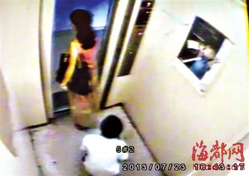这一系列的情况都被当时电梯内的监控拍了下来。