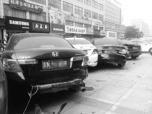 附近一家单位的工作人员告诉记者,事发当晚正轮到他值勤,睡到正酣时,忽然听到外面传来接二连三的撞击声,“我当时睡得特别死,但西边传来的‘噼里啪啦’的撞击声非常大,因为我被反锁在室内无法外出,因此没能看到现场的情形。”一名知情人士告诉记者,当晚共有16辆汽车被撞。
