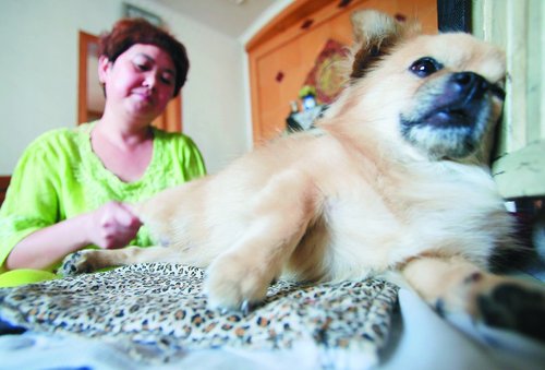 在医生的建议下,毛毛开始了针灸治疗。第一次扎针时,要两个人按着毛毛,一走针,毛毛就乱动乱叫、变得很狂躁。“毛毛啊,知道你疼,可为了能走路,咱得忍着,知道吗?”女主人的安慰,通人性的毛毛好像听懂了,在第二天针灸时,它一声不吭,小身子哆哆嗦嗦地配合着医生进行针灸。遗憾的是,10天针灸的效果并不明显,后来医生给出最终诊断——— 停了吧,这狗治不好了。