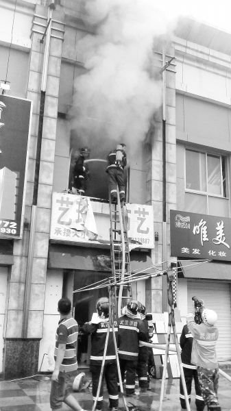 由于店内堆放了大量的布匹织物,火势很快便开始向楼上蔓延。张建鹏等人一边用自备的灭火器朝火源喷射,一边从外面的消防栓接来水龙带灭火。很快,消防官兵赶到了现场,将火势扑灭。纵火男子被庙山派出所民警带走并送往医院。