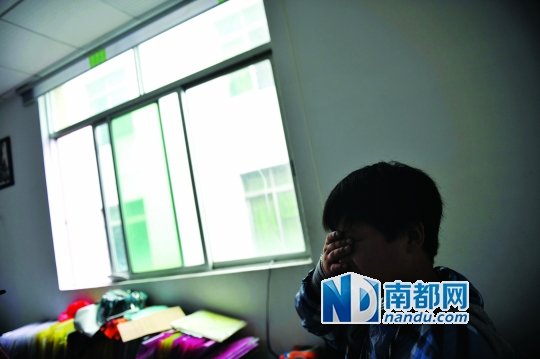 儿子在父亲坠楼的窗口前哭泣。 南都记者 梁炜培 摄