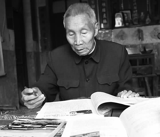 11月4日上午10时许,隆回县荷田乡荷田村一座民宅内,86岁的退休教师欧阳任南正拿着《中国梦之歌———全国诗词创作获奖作品集》入编稿,认真介绍其自创的诗词作品。几十年来,欧阳任南笔耕不辍,研究对联,为弘扬中华民族传统艺术不遗余力,退休后又乐洒余热,让人敬佩。