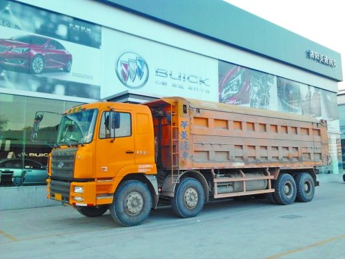 11月18日下午,在西工区汉宫路洛阳美通别克4S店大门前记者看到,一辆黄色后八轮卡车紧贴着该店门前台阶,将店门堵得严严实实,该店售后服务预检区大门也被一辆半新的银灰色别克GL8商务车堵住。4S店工作人员杨女士告诉记者,在4S店后门,还有一辆黄色后八轮卡车堵着门。