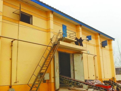 张某就是从粮仓大门上面的观仓门(图中标注处)跌落下去的,观仓门现已落锁关闭