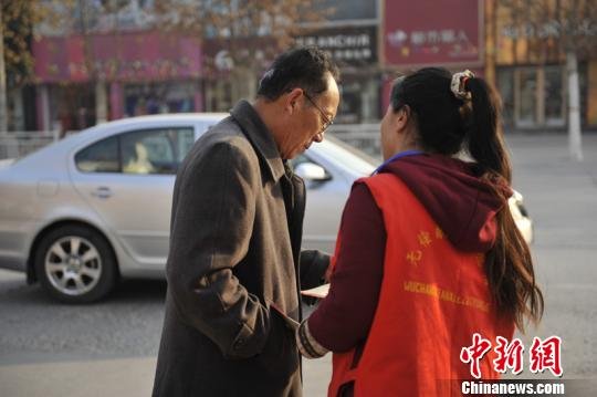 志愿者在街头为过往市民讲解献血的有关常识陈巍高摄