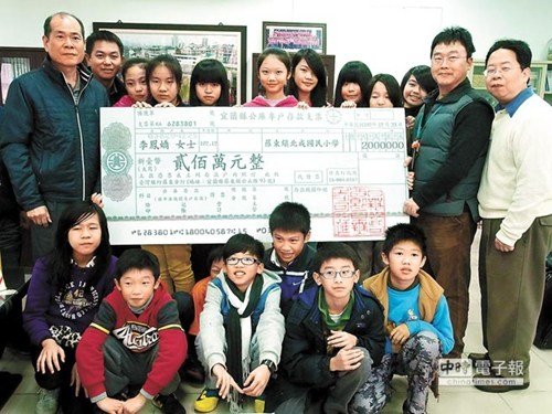 中新网12月24日电 据台湾《中国时报》报道,1年前因病去世的北成小学校友李凤娇,难忘怀小学读书时,受到校方及老师的关怀照顾,临走前嘱托家人将毕生存款捐给学校,校方23日收到家属捎来的200万台币善款,李凤娇遗爱人间的善举,令校方感动,未来这笔善款将帮助校内弱势学童安心向学。