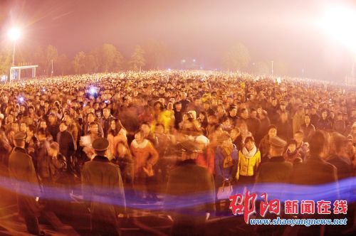 12月26日零时刚过,16名韶北村爱好文艺的群众自发来到广场上舞龙庆祝。