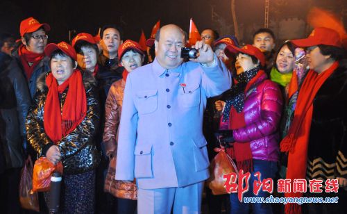 12月25日晚上,广场上红歌此起彼伏,一位老者拿起相机记录下这一激动的时刻。
