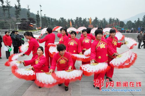 12月25日下午,周边群众在广场上跳起了扇子舞。