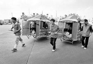 两位老人所乘坐的人力“房车”看起来像大花轿。“房车”长约2米,宽约1.5米,高约2.2米。车里放着换洗的衣物和生活用品,车底垫了4层海绵垫。可以说,这“房车”麻雀虽小五脏俱全,白天是交通工具,晚上就是父子、母女的“旅馆”。