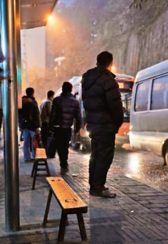 “除了等公交车的,还有很多等单位交通车的乘客。”伍明游说,摆摊多年,她对车站的公交线路都了如指掌,例如608路公交车,经常一等就是半个小时。还有等单位交通车的上班族,因为怕赶落车,往往都提前40多分钟来候着。但不知何时,供乘客候车的凳子被拆除了。
