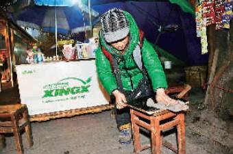 每天摆摊前,伍大姐都要把凳子擦干净。