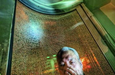 现场 外层钢化玻璃碎成“蜘蛛网”