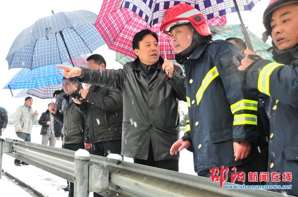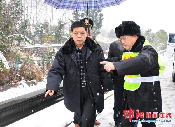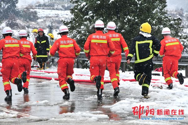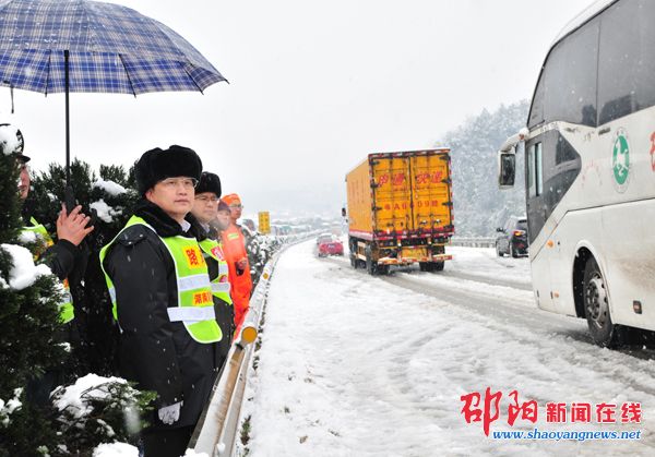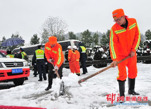 邵阳高速公路管理处的养护工们紧急铲雪开道
