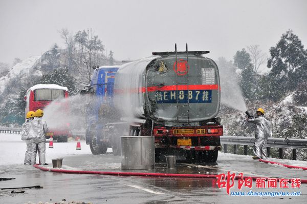 邵阳新闻在线讯(记者 欧阳德珍 通讯员 杨己秀)2月18日早上6:45,沪昆高速公路K1262处(邵阳县长阳铺丘田村)一辆大客车与油罐车相撞,油罐车中的30多吨汽油泄漏,并导致上千台车辆受阻。事故发生后,市委、市政府高度重视,迅速组织市应急办、高速公路管理处、消防、交警、公安、安监、环保等部门,进行紧急施救和疏导交通。经过多次六个多小时的紧急处置,终于在中午13:20安全地移开了事故车辆,疏通了交通。事故没有造成人员伤亡。