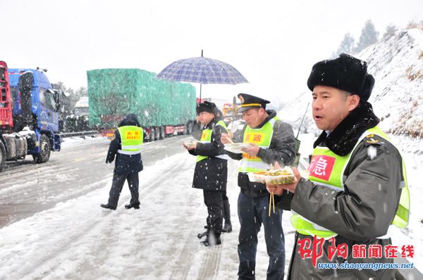 13:30 道路畅通后,邵阳高速公路管理处为员工们送来了午餐