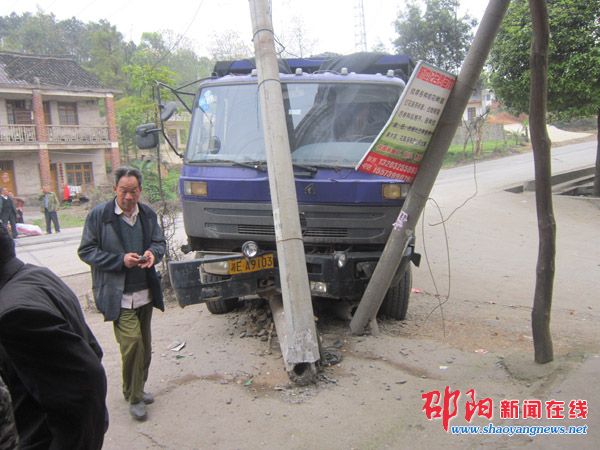 邵阳新闻在线讯(通讯员 刘惠芳)“当时我正去办事走在路旁,身后传来猛烈的撞击声,车就撞上了电线杆,幸好没有撞到路人。”目击者罗某回忆。近日,在邵阳县207国道九公桥庙山路段,一辆装载砂石的货车失控撞上了路边的电线杆,造成货车受损严重。