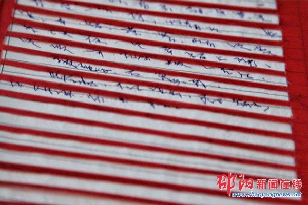 蒋妹一刀一刀刻出均匀的横格,为丈夫特制成镂空分行的塑料板。曾经也用过不锈钢板,因为心疼丈夫冬天用起来太冷所以作罢。这样的塑料薄板,如今已经用坏了十多块。