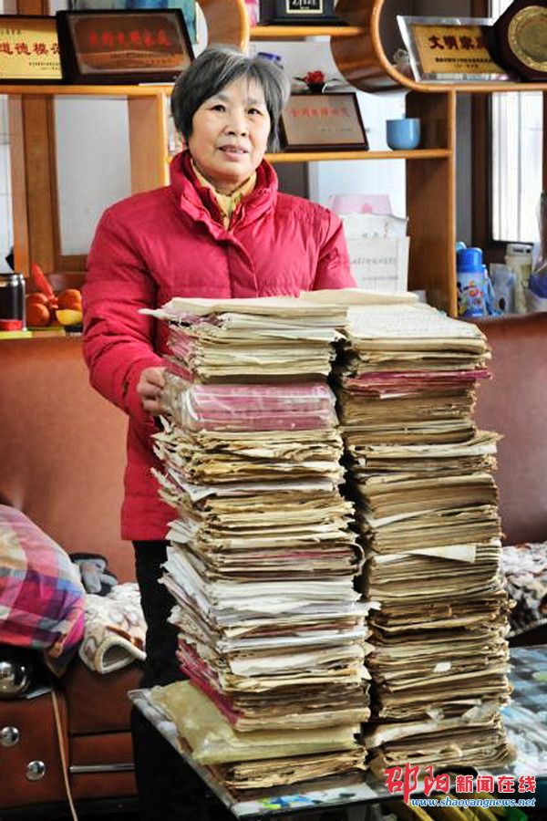 曾令超写的每一份文稿,蒋妹都要誊抄两遍,一份投稿,一份留底,近一人高的手稿如今已出书成册。