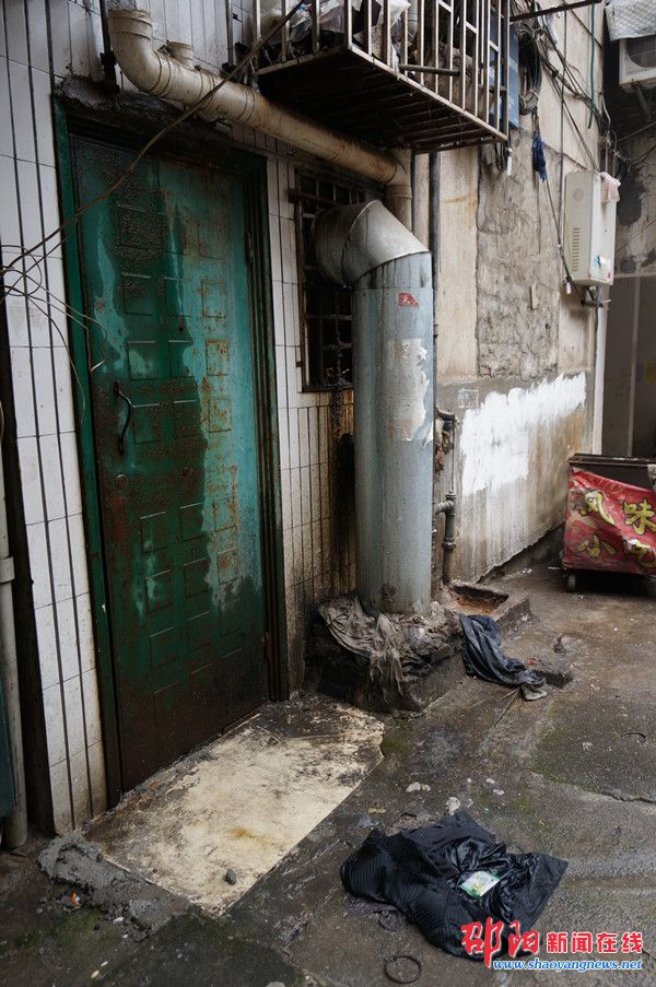 据介绍,事情所有的症结都在楼下的“老刘饺面馆”。记者先后分两次到饺面馆一探究竟。5月13日上午8时许,饺面店的老板娘将灶台摆到了人行道旁上,尽管已经过了居民口中的气味最呛人时段,但记者从店前经过时,依然可以闻到一股很呛鼻的刺激性气味。记者以吃粉为由进入店铺,却发现店内是一个大通间,没有单独的分隔厨房,炒菜的另一套灶台靠近后窗,而地上则是一派脏乱景象。中午12时许,中餐的生意火起来,记者再次来到该家店铺,绕到店后侧,只见排烟筒虽然做了入地的改造,但实际上因没有密闭而形同虚设,浓重的油烟味汩汩地窜出来,飘到楼上去。