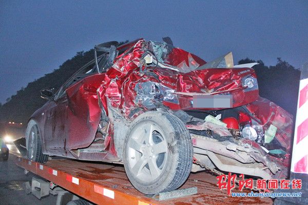 邵阳新闻在线讯(记者 刘波) “还好前面小车后排乘客坐左侧,不然就危险了。”5月18日19时30分许,湖北籍大货车司机郑先生依然惊魂未定。当天16时50分许,他运送蔬果的厢式货车行经沪昆高速1270公里处时,撞上一辆雪佛兰小轿车,导致该车严重受损,人员受伤。