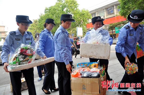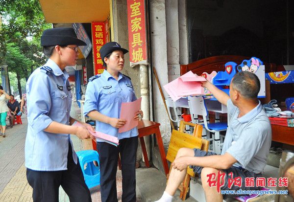 大新街是新邵县城一条繁华热闹的街道。中队成立之初,挑担卖小菜的,推三轮车卖小商品的,来来往往,街道拥挤不堪,有损市容市貌。面对乱象,原本都是做内勤的女子执法队员一度感觉无从下手。