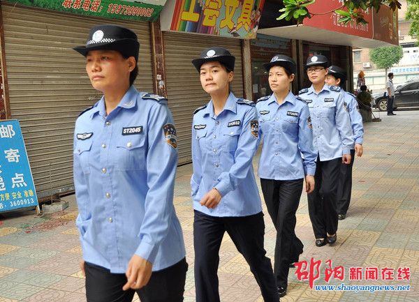 5月30日下午,新邵县女子城管队正在街头巡逻。申兴刚 摄