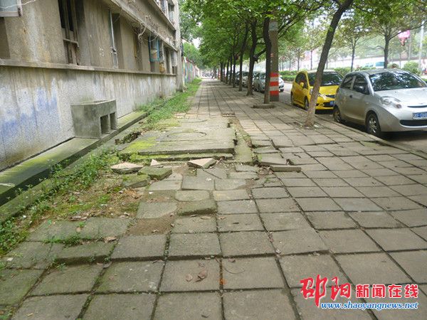 邵阳新闻在线讯(记者 谢婷婷)宝庆路是一条贯穿邵阳市城区的东西主干道,然而宝庆西路相对于宝庆中路而言,路况差了很多,行人与机动车辆博弈,人行道的某些路面没有地砖,泥土裸露,穿着高跟鞋的女士很容易崴脚。6月18日,记者从城西供电局到邵阳医专,走了一个来回,体会走这条道路的“不易”。