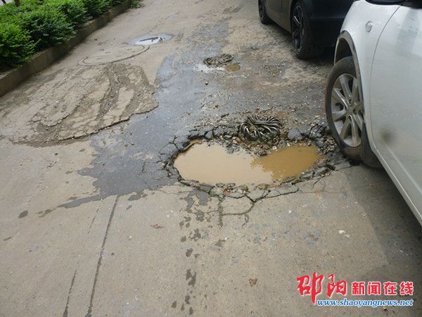 此路段两边人行道有四个大坑。在工商银行附近,坑旁边露出了钢筋,路过的行人和车辆只能绕行。在民族路的入口处,连续有两个大坑。记者在此驻足10分钟,每一辆小车驶过,都努力避开这两个大坑,实在无法,便小心翼翼地驶过。整个路段总共有10个大坑,小坑无数。最近,雨水多,大坑里填满了水。这时,在市科协公交站附近,一辆小车要开进二纺机住宅区,一个行人正好通过,大坑里的污水就溅到了这个行人身上。