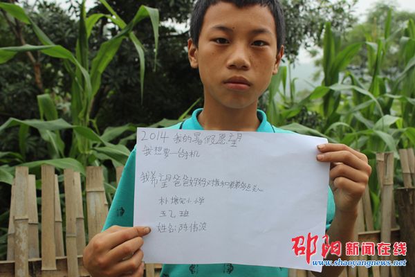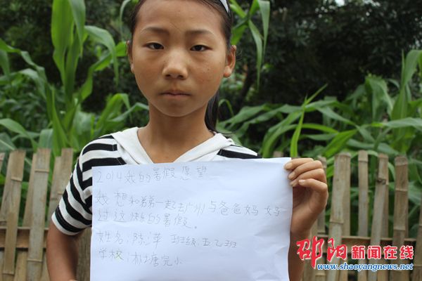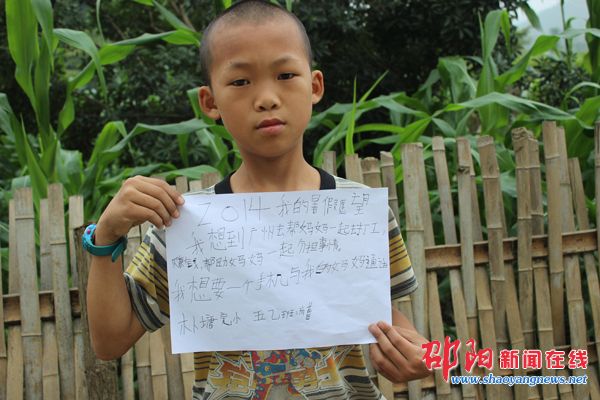 邵阳新闻在线讯(通讯员 陈芙蓉)暑假来临,留守儿童如何度过假期?他们的愿望是什么?隆回县岩口镇朴塘完小的几个留守儿童表达了他们的愿望。
