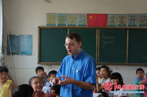 今年30岁的安东是邵阳学院魏源国际学院的一名外教,来邵阳已经一年半时间。今年暑假,在得知自己的学生们已经在为农村的留守儿童志愿服务时,安东也决定鼎力相助。