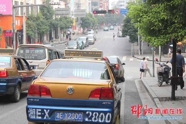 当天9时50分,记者来到中心路实地观察。从中心路南段坡顶一路走下来,直到接近红旗路口约30米远的位置才有一个右转交通标线。“如果我们车速稍微快点,这个右转交通标线就很容易被忽视,特别是外地车辆,不熟悉邵阳路况,都不知道能否右转。”司机谢先生说。然而,在此路段看到的红绿灯只显示直行的交通信号,没有右转交通指示灯。除了一些熟悉路况的出租车司机知道中心路可以随时右转外,许多私家车驾驶员都很谨慎,不敢轻易右转弯,直到对面交通指示灯显示绿灯直行时才敢右转弯,这样造成中心路右行车道经常小堵。
