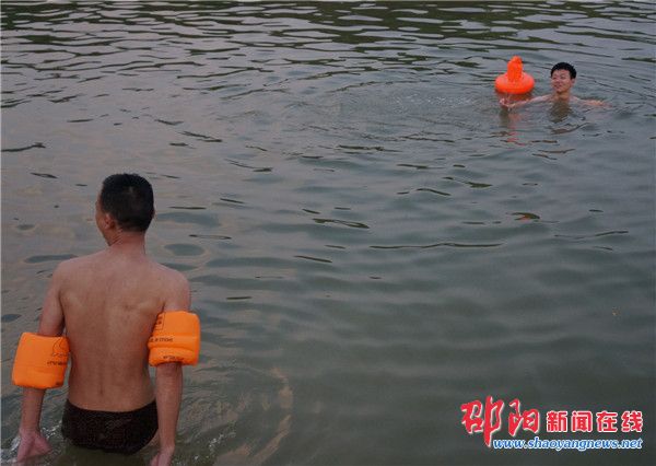 胳膊上绑着水袖,腰上还系了一个“浮游跟屁虫”,市民张阳笑称这是“最潮装备”。每天下班后,张阳都会便和几个朋友约好来资江二桥游泳。“以前在游泳馆也办过年卡,但游泳馆人多得像‘下饺子’,后来就想着干脆来资江游泳好了。”张阳说,这里风景好、水也干净,更有亲近自然的感觉,只要带好游泳装备应该也就没啥安全问题。