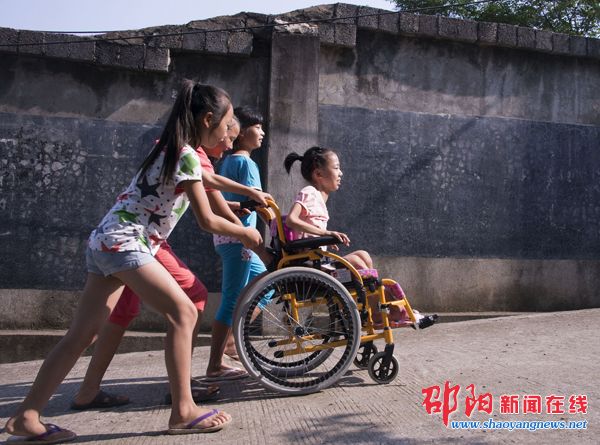 经过一个多小时,两人来到了安义学校,一群学生看到了,立即跑过去帮忙推着轮椅。报名的地点设在教学楼的二楼。何芹姣将轮椅寄放在一楼,背着何颖慧上楼,两人一起报到、交钱、领书,一群来自邵阳、隆回、洞口、绥宁等地的爱心人士帮助她们交了费。“我们在网上看到报道之后,很受感动,想尽绵薄之力帮她们一把。”爱心人士表示,将承担两人初中三年的上学费用。