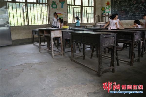 铁梅教学点里坑洼的地面,老旧的桌椅