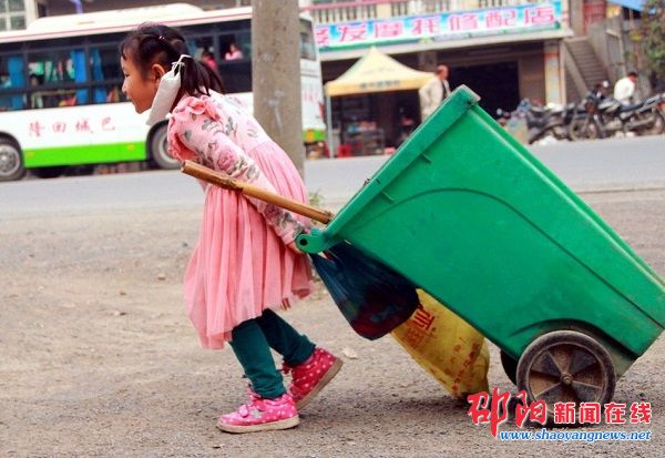 5岁的女童夏美玲在倒垃圾