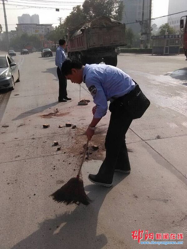 10月24日,一辆渣土车从杨家垅驶向市区方向,在经过资江二桥桥头水利局附近的时候,因为没有打防护罩,部分砖头从车上掉落下来,险些砸中过路的车辆,被城管支队的执法人员拦截下来。图1为执法人员正在对该车辆进行盘查。 陈星 孙良才 摄影报道