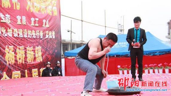 在邵东县杨桥镇举办的第二届湖南省“农民工春晚”上,杂技表演抓人眼球。