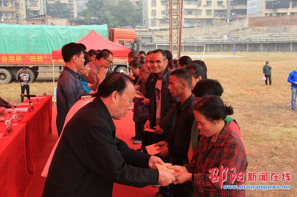 10月28日上午,双清区黄家山体育馆内爱心涌动。湖南省民政厅民间组织管理局、省社会组织教育实践活动办公室,在这里举行“助学、助医、助老、助困”(简称“四助”)公益活动受助仪式。